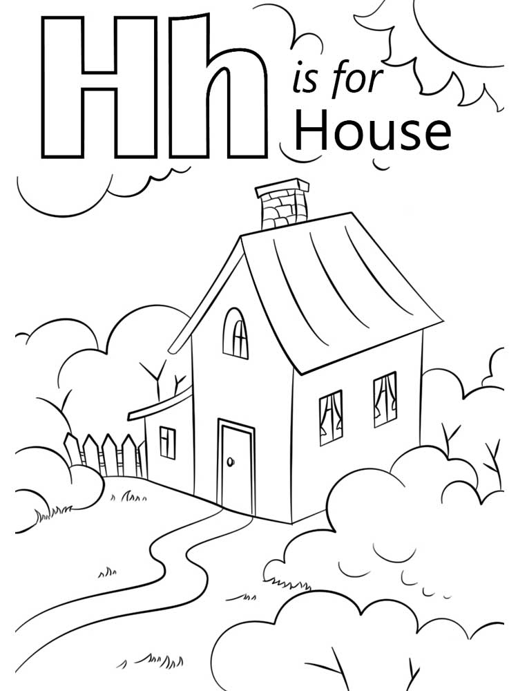 1. House: A simple house outline with the letter H on the roof can be a great coloring page for young children.