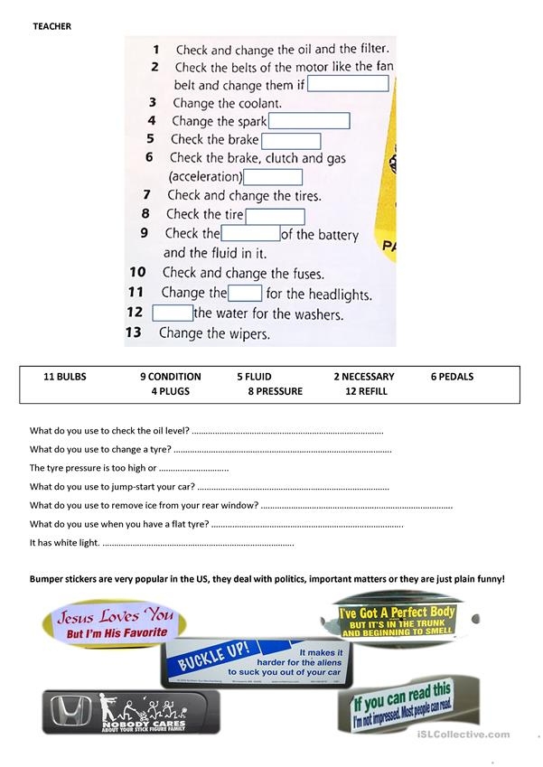 Automotive Worksheets Free