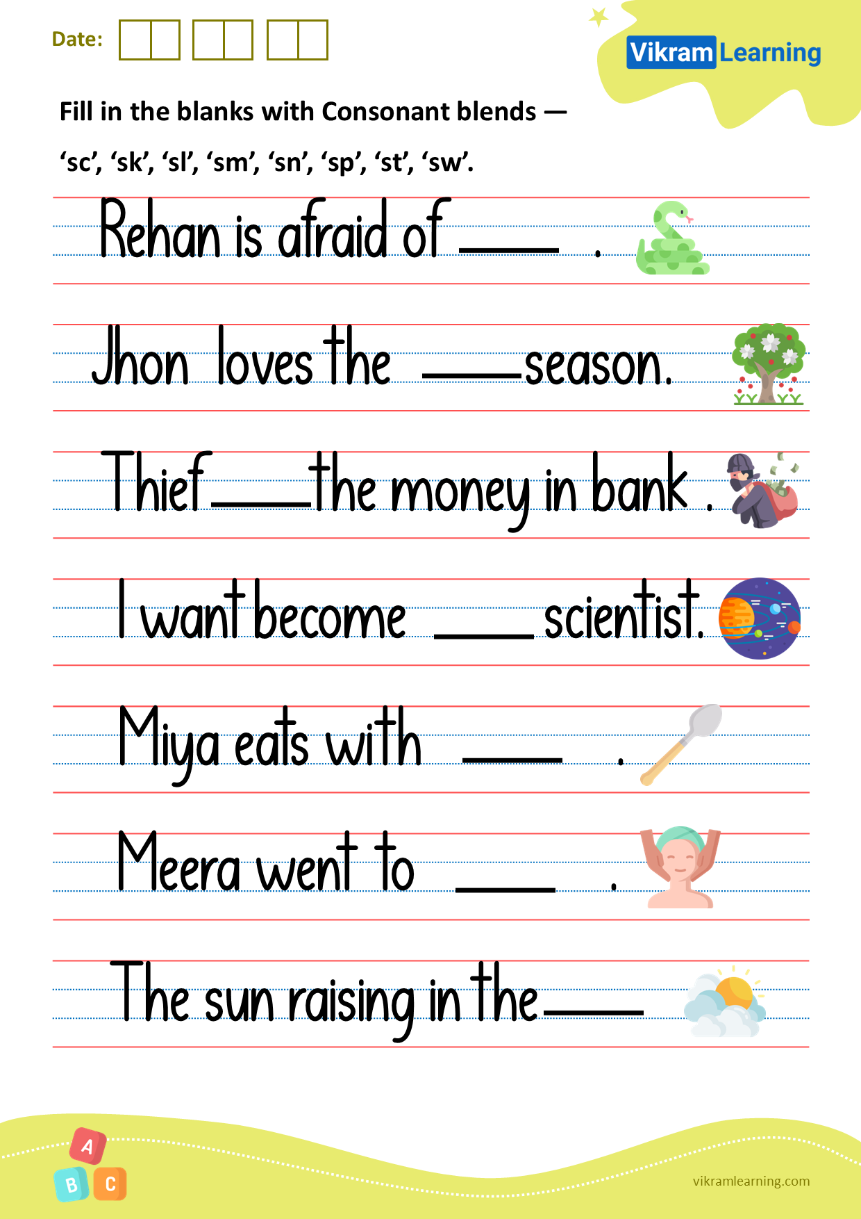 Download Free Consonant Blends Worksheets PDF