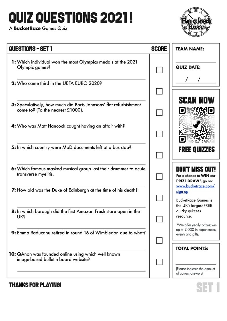Free Printable Quiz Questions 2021