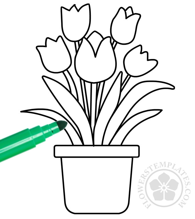 Free Printable Vase With Tulips Flowers Templates