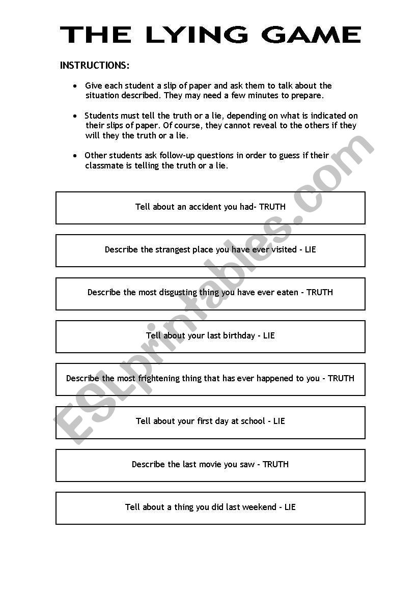 Free Printable Worksheets on Lying