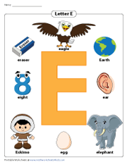 Letter E Worksheets for Kids