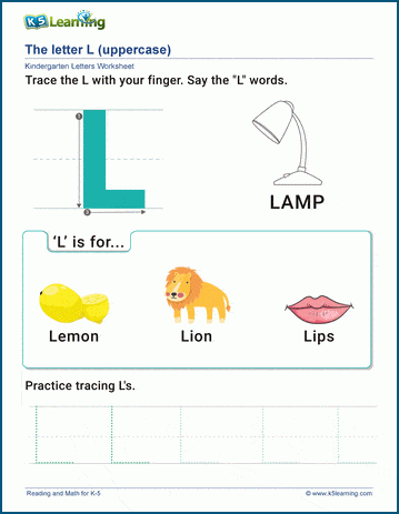 This worksheet features large, dotted letter L’s that preschoolers can trace with their fingers or a pencil. Tracing helps children develop their fine motor skills and familiarizes them with the shape of the letter. Encourage children to say the letter L out loud as they trace it to reinforce letter recognition.