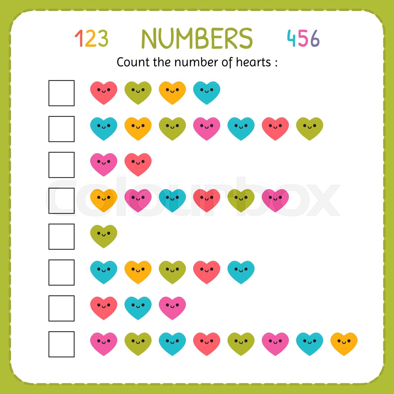 Count The Number Of Hearts Worksheet For Kindergarten And Preschool