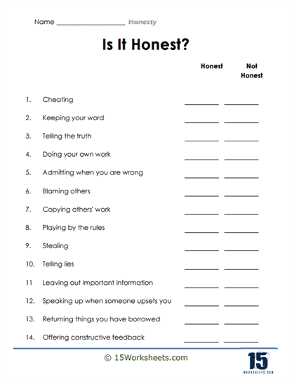In conclusion, honesty is a cornerstone of adult life that enhances our relationships, builds trust, and fosters personal growth. Printable worksheets on honesty for adults offer a structured approach to self-reflection and improvement in this essential virtue. By engaging with these worksheets, individuals can develop a deeper understanding of their values, behaviors, and communication patterns, leading to a more authentic and fulfilling life.