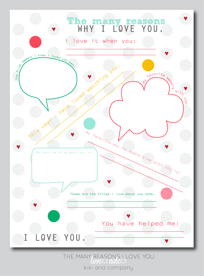 The Many Reasons Why I Love You LOVE NOTE Free Printable Kiki Company