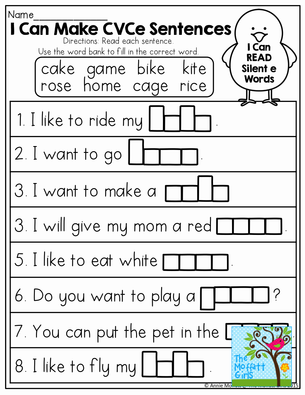 Examples of Silent E Words Worksheet