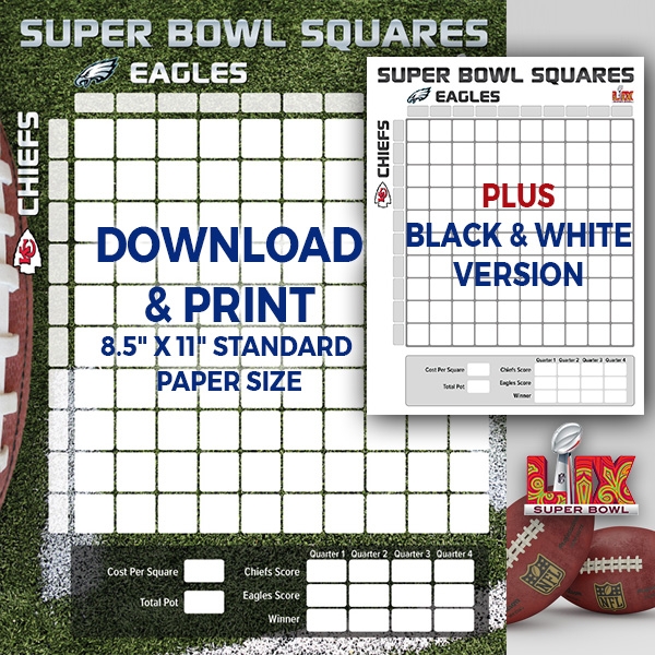 Overall, printable Super Bowl squares are a fun and easy way to add some excitement to your Super Bowl party. Whether you’re hosting a small gathering with friends or a larger event with coworkers, printable squares are a great option for anyone looking to spice up their party. So print out your grid, gather your friends, and get ready to enjoy the big game in a whole new way!