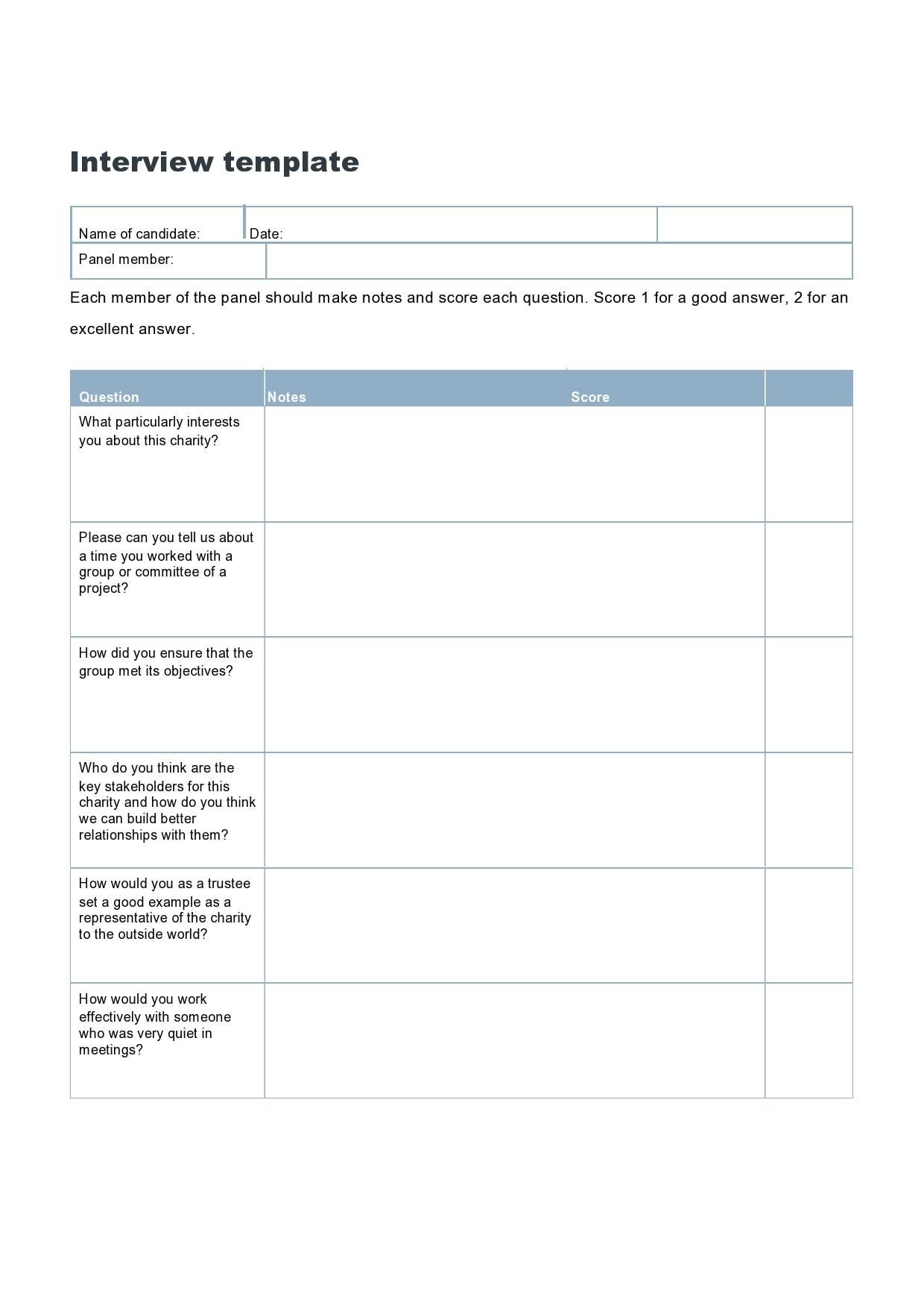 Word Template for Interview Questions