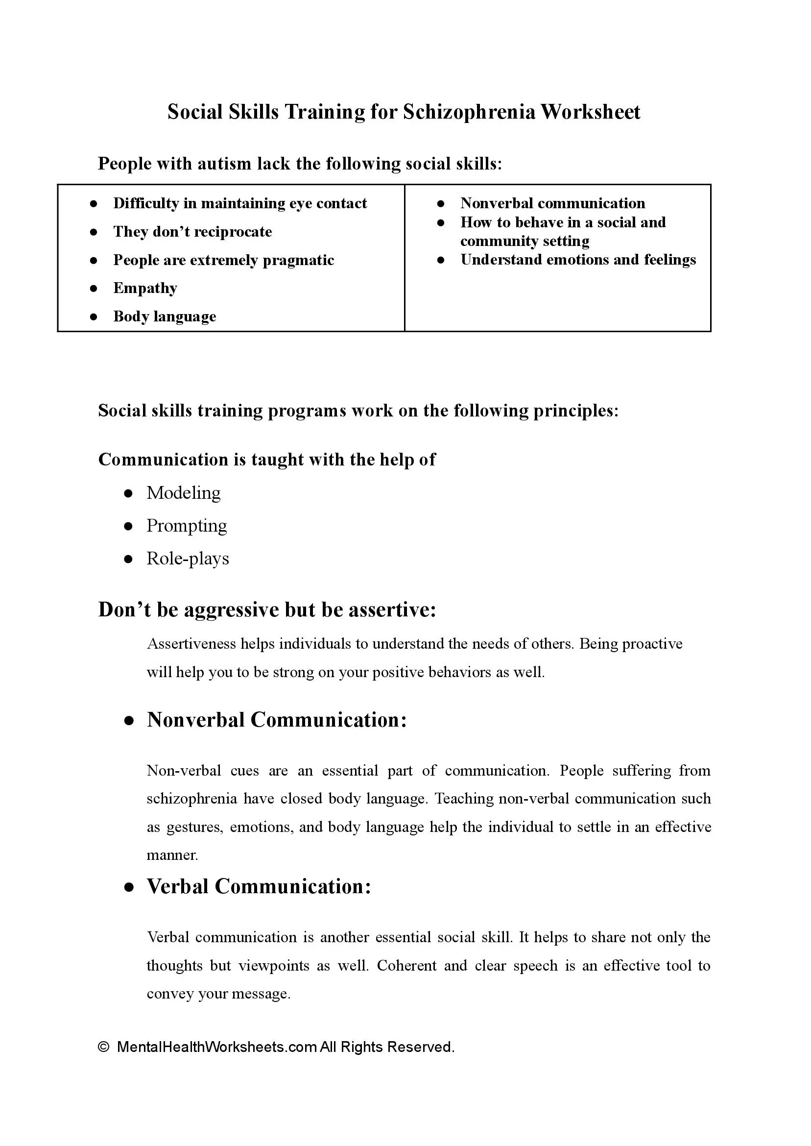 Social Skills For Schizophrenia Worksheets SkillsWorksheets