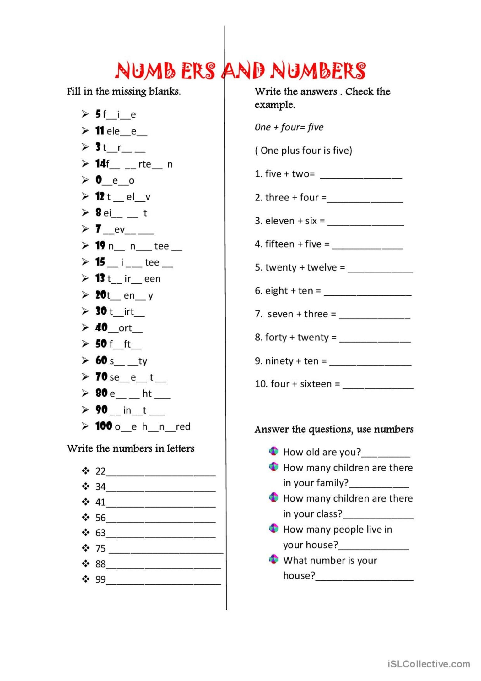 Worksheets for kids numbers also include exercises for writing numbers, where children have to trace and write numbers in order to improve their handwriting and numerical skills. This helps them practice proper number formation and reinforces their understanding of numerical symbols.